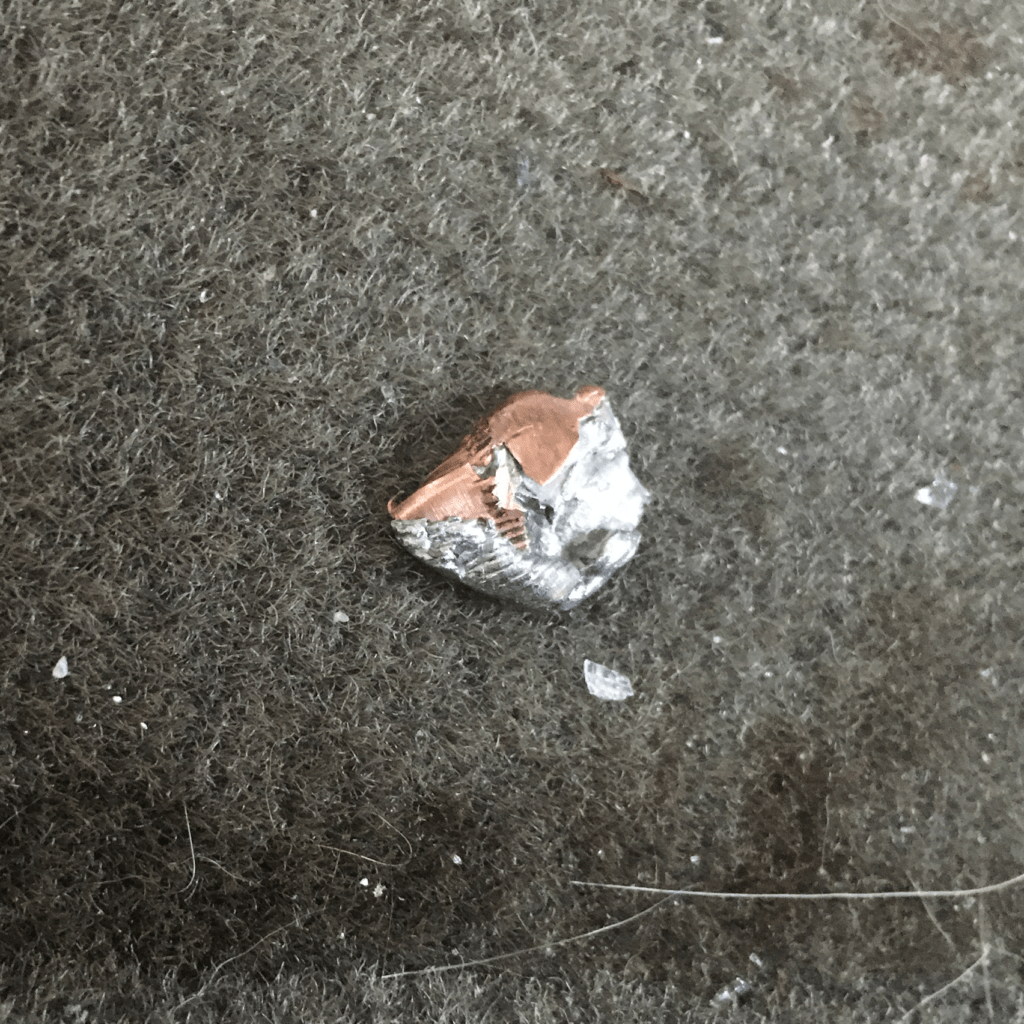 There is also the perception that hollowpoints are very fragile. This is evidenced by my coworkers fear that Hydra-Shok bullets would "disintegrate" upon hitting a car. There is a kernel of truth to this idea, but only in older, poor designs, or in gimmick ammo. Modern hollowpoints almost universally have a jacket that is chemically bonded to the core. Chemical bonding has solved this issue of weight retention, keeping the core and jacket together in tissue, and keeping the bullet together while shooting through barriers. I'd posit that a bonded JHP is perhaps tougher than a cheap JHP round.